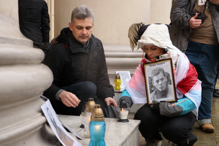 На прыступках КДБ удзельнікі салідарнай акцыі памяці запалілі знічы. Лідары правацэнтрысцкай кааліцыі Юрась Губарэвіч, Віталь Рымашэўскі, Анатоль Лябедзька, а таксама прадпрымальніцкі лідар Алесь Макаеў выступілі з прамовамі.